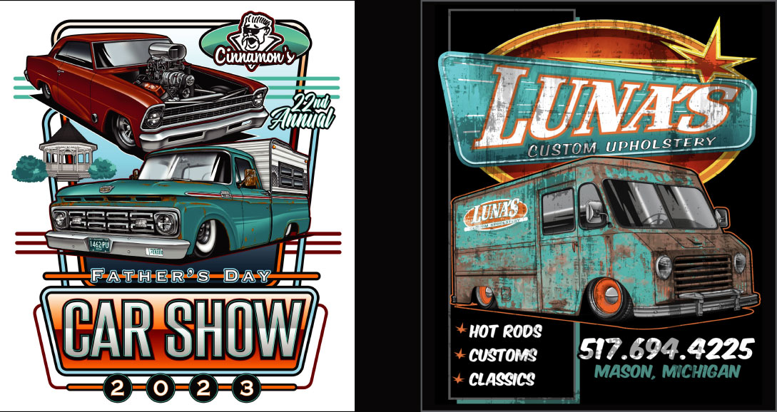Designing for car show shirts is something we take great pride in. Our process offers flexibility to meet a range of needs, from using illustrations in our extensive car illustration library to help keep costs down, to creating fully custom, one-of-a-kind illustrations based on your vehicle. Every design is approached with precisionand attention to detail, ensuring your car show shirts stand out, and will be worn for years.